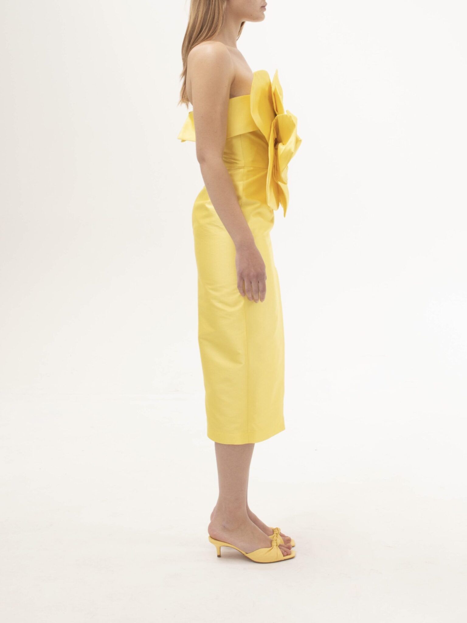 Midi Dress With Flower Detail in Yellow