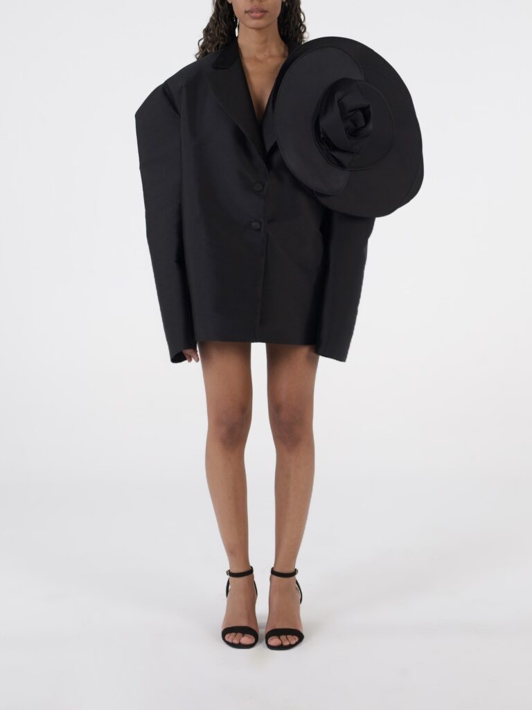 Oversized Jacket With Flower Detail in Black