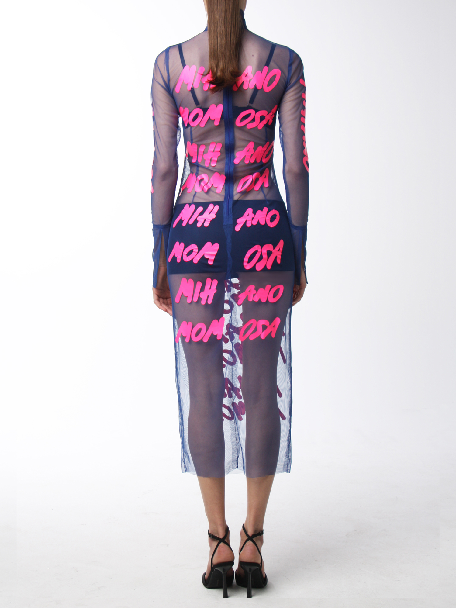 Sheer Navy Midi Dress With Print